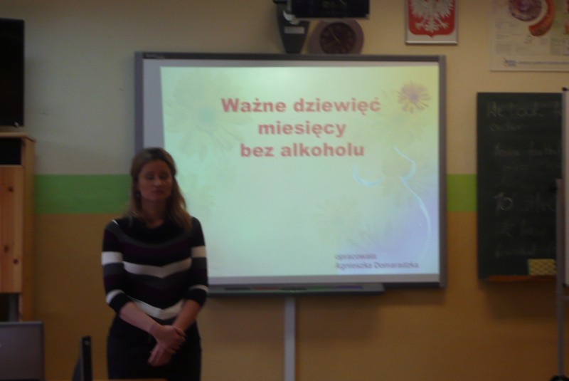 W poniedziałek goszczono w szkole przedstawicielkę Zachodniopomorskiej Fundacji Pomocy Rodzinie „Tęcza serc”. W czterech klasach przeprowadzono warsztaty dotyczące FAS, czyli płodowego zespołu alkoholowego. Warsztaty przybliżyły uczniom problem zespołu FAS, m.in. nieuleczalność tej choroby, którą można uniknąć zachowując abstynencję w czasie trwania ciąży.
