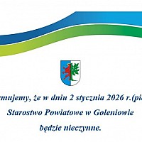 Uwaga, 2 stycznia 2026 r. Starostwo Powiatowe będzie nieczynne.