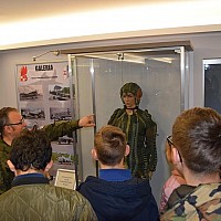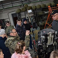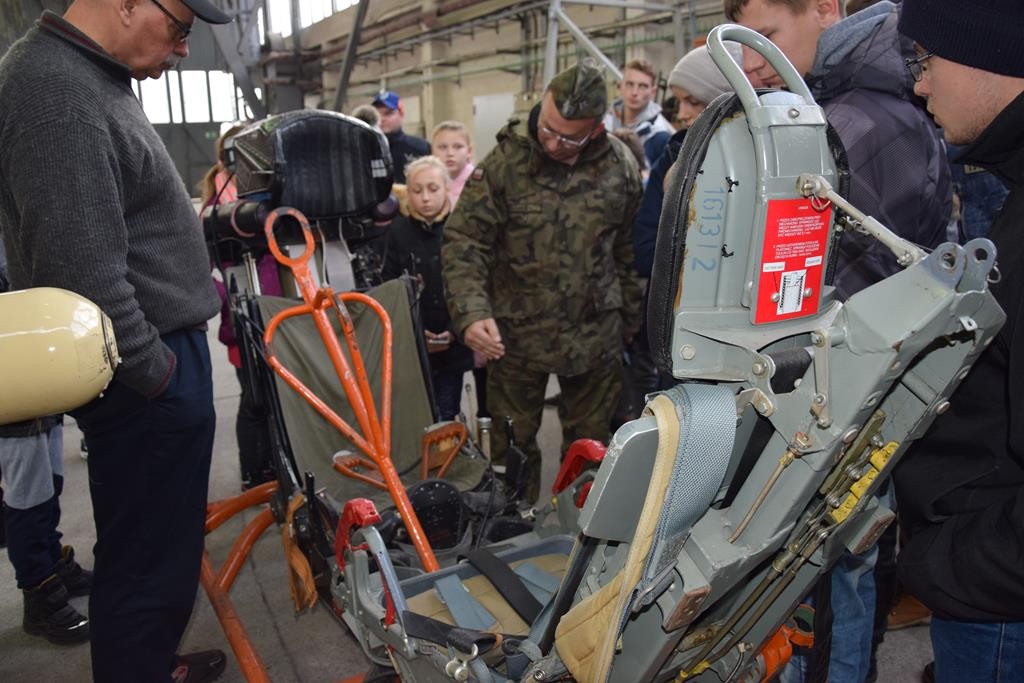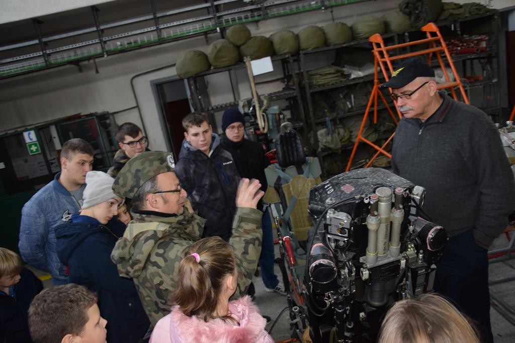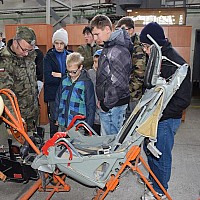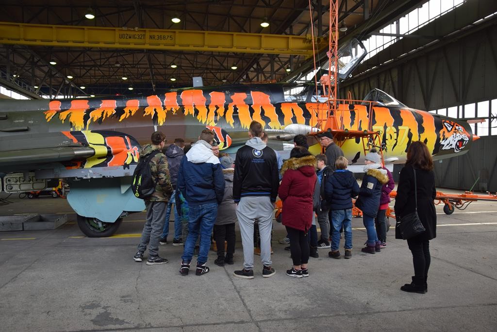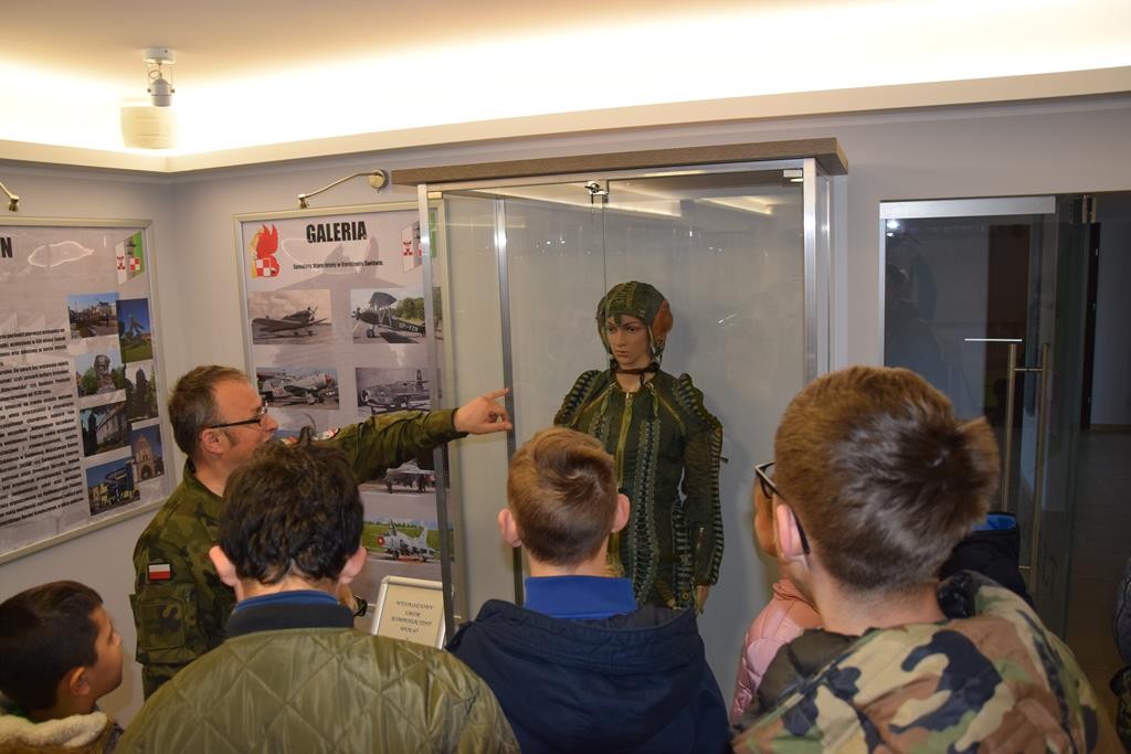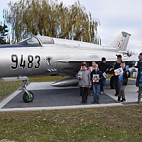 Przed wejściem na lotnisko czekał na nas przewodnik, pan Jacek Daśko, rzecznik prasowy Bazy. Wycieczka rozpoczęła się od wizyty w Sali Tradycji, w której dzieci zobaczyły modele samolotów, mundury galowe i ćwiczebne żołnierzy, sztandary, makietę całego lotniska oraz zdjęcia. Tam pan przewodnik zapoznał dzieci z historią 21. BLT, opowiedział o dowódcach Bazy i codziennej służbie w tej jednostce wojskowej. Uczniowie z zaciekawieniem słuchali opowieści oraz zadawali mnóstwo pytań. Następnie udaliśmy się na płytę lotniska oraz zwiedzaliśmy hangary służące do napraw samolotów. Tam z bliska mogliśmy się przyjrzeć stojącym statkom powietrznym. Każdy miał możliwość siąść za sterami samolotu ISKRA. Uczniowie otrzymali skromne upominki związane z 21.Bazą Lotnictwa Taktycznego. Wycieczka dostarczyła dzieciom mnóstwo wrażeń. Serdeczne podziękowania dla Stowarzyszenia NASZE SZANSE , które sfinansowało nam dojazd w obie strony.