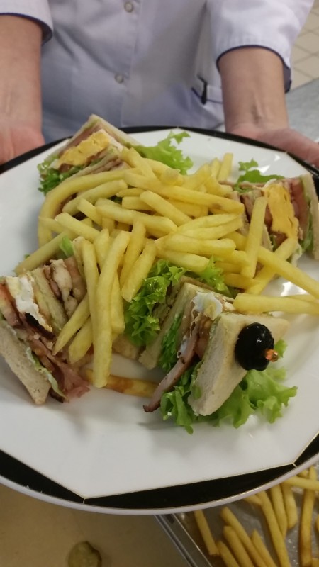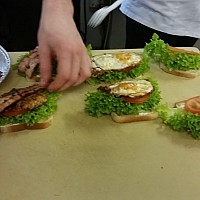Mieliśmy możliwość przyjrzenia się, jak powstaje firmowa kanapka, sałatka rzymska oraz omlet z warzywami. Pani Anna Szadkowska dała do degustacji danie dnia - cannelloni faszerowane kaszą, borowikami i pieczarkami, a do tego aromatyczny sos grzybowy. Jednym słowem - było pysznie!