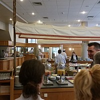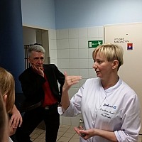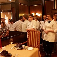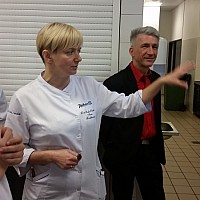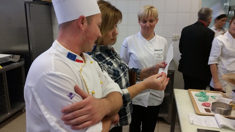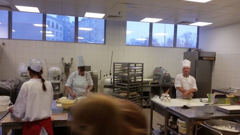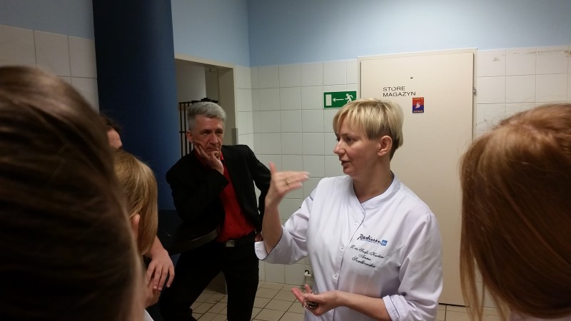 Duże wrażenie zrobiła na nas bardzo sprawna praca personelu oraz ich nienaganny strój. Okazało się, że pracownicy kuchni w trakcie jednego dnia pracy zmieniają swą odzież roboczą nawet trzykrotnie! Wszędzie widać było, jak dużą wagę przykłada się tu do spraw związanych z higieną pracy i higieną przygotowywania potraw. Sporą grupę pracowników stanowią uczniowie zasadniczych szkół zawodowych, którzy w Radissonie odbywają praktyki zawodowe. Jednym z nich okazał się syn pana Tadeusza - Bartek Felbur, który jako trzecioklasista zademonstrował koleżankom i kolegom z Goleniowa swoje kulinarne umiejętności.