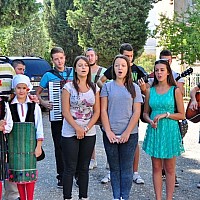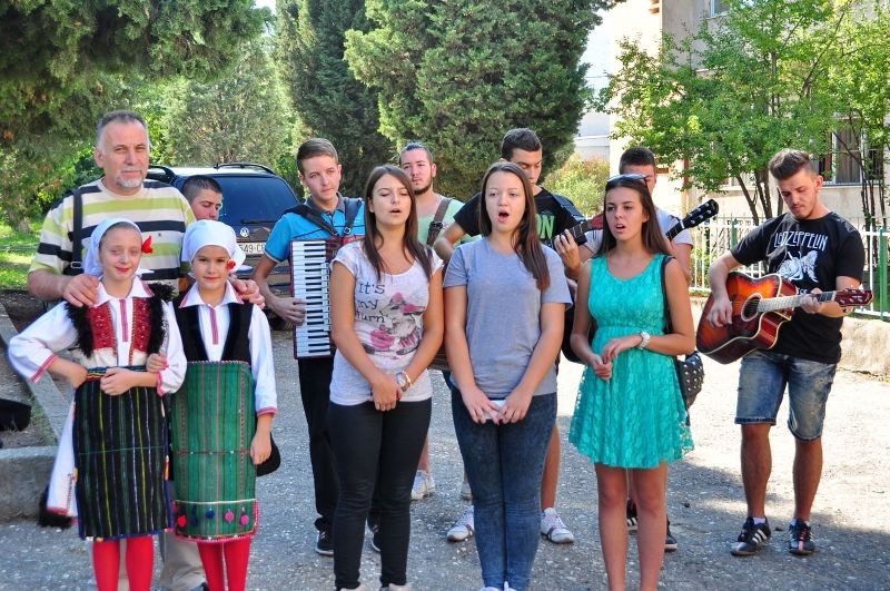 Wczesnym rankiem udaliśmy się w dalszą podróż i późnym popołudniem dojechaliśmy do Veles. Tam zostaliśmy gorąco przywitani przez dyrektora szkoły Pana Boro Ristovski, nauczycieli i uczniów. Dziewczęta w pięknych tradycyjnych strojach poczęstowały nas chlebem i solą, w tle mogliśmy usłyszeć ludowe pieśni macedońskie. Po królewskim powitaniu udaliśmy się na poczęstunek.