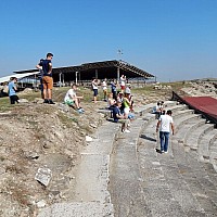 W środę po śniadaniu pojechaliśmy do Stobi, gdzie zwiedzaliśmy ruiny starożytnego miasta (m.in. teatr antyczny, bazylikę, synagogę, łaźnie), następnie udaliśmy się do fabryki solarów słonecznych, gdzie pracownicy pokazali nam czym się zajmują i jak wygląda ich praca. Wieczorem wraz z kadrą szkoły macedońskiej udaliśmy się do winiarni, gdzie odbyła się uroczysta kolacja.