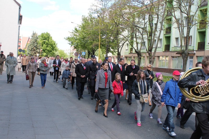 Uczestniczyli w niej przedstawiciele władz gminnych i powiatowych, kompania honorowa 3 Batalionu Logistycznego, poczty sztandarowe, przedstawiciele służb mundurowych, kombatanci, liczna grupa mieszkańców i młodzież. Powiat Goleniowski reprezentował Starosta Goleniowski Tomasz Stanisławski. Po mszy, nawiązując do Konstytucji 3 Maja i do sytuacji na Ukrainie burmistrz Robert Krupowicz mówił przede wszystkim o znaczeniu swobód i wolności obywatelskich. Następnie pod tablicą upamiętniającą uchwalenie Majowej Konstytucji delegacje kombatantów i władz złożyły kwiaty. Rocznicowe obchody zakończyło przejście pod Pomnik Niepodległości, gdzie delegacje władz, organizacji pozarządowych, szkół i zakładów pracy złożyły kwiaty.