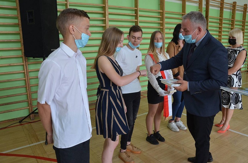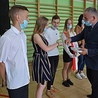 W miniony czwartek w Zespole Szkół nr 1 w Goleniowie odbyło się uroczyste pożegnanie absolwentów Szkoły Branżowej I Stopnia przy Zespole Szkół nr 1 w Goleniowie. Uroczystość była też okazją do wręczenia nagród uczniom, którzy osiągnęli wybitne rezultaty w konkursach i zawodach sportowych. Pani Dyrektor Wydziału Oświaty i Sportu Renata Chomińska, Przedstawiciel Cechu Rzemieślników i Przedsiębiorców Mariusz Walkowiak oraz Dyrektor Zespołu Szkół nr 1 w Goleniowie Michał Grycz gratulują uczniom osiągniętych rezultatów i życzą udanych, zasłużonych wakacji.