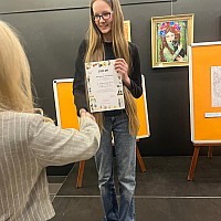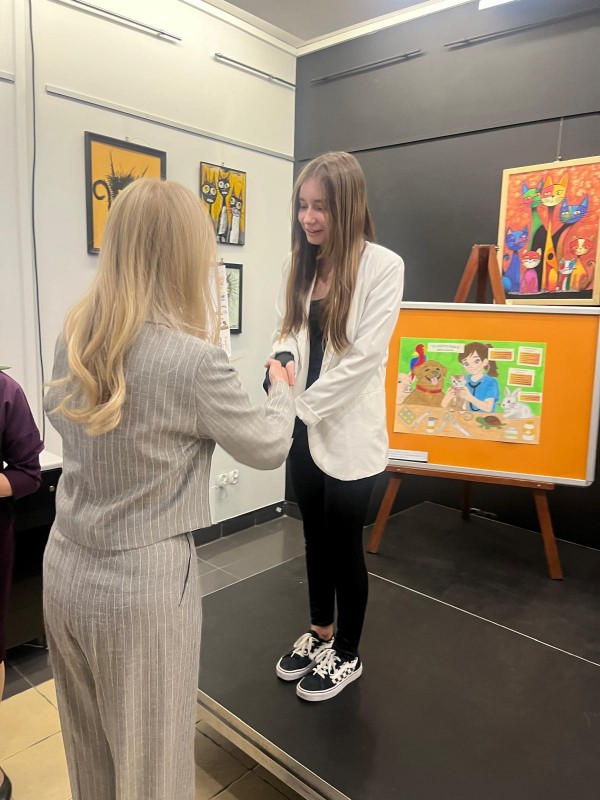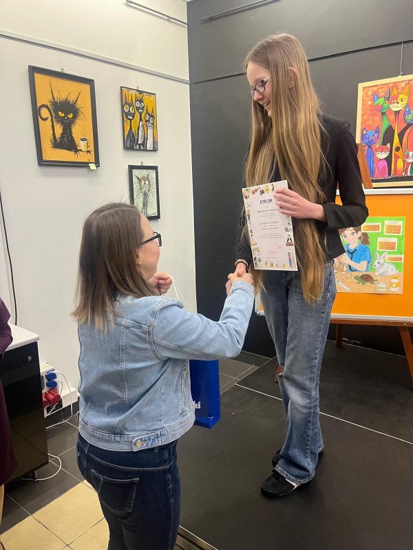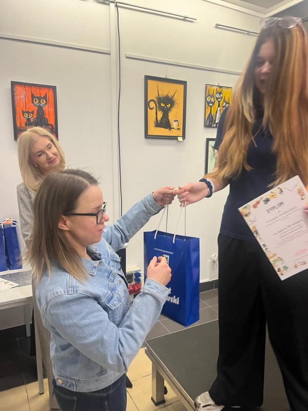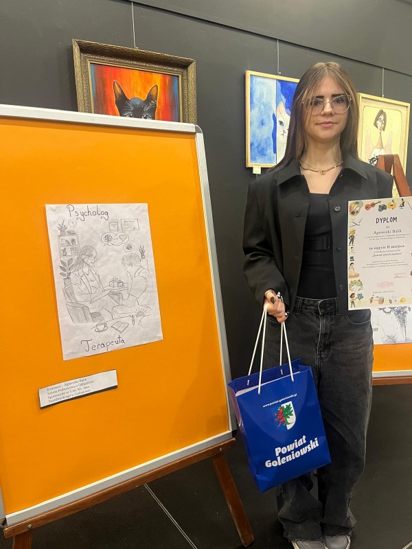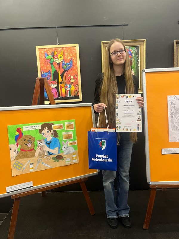 W uroczystości uczestniczyli laureaci i wyróżnieni uczniowie wraz z wychowawcami, rodzicami i dyrekcjami szkół. Przypomnijmy, że I miejsce zajęła Antonina Susicka ze Szkoły Podstawowej im. Kardynała Stefana Wyszyńskiego w Lubczynie, II miejsce – Agnieszka Balik ze Szkoły Podstawowej z Oddziałami Sportowymi nr 5 im. Ks. Jana Twardowskiego w Goleniowie, III miejsce- Veronika Parkhatska ze Szkoły Podstawowej nr 4 im. Bolesława Chrobrego w Goleniowie, Wyróżnienia otrzymały: Katarzyna Soroczyńska ze Szkoły Podstawowej nr 1 im. Noblistów Polskich w Goleniowie, Andżelika Rybińska – ze Szkoły Podstawowej nr 2 im. Henryka Sienkiewicza w Goleniowie, Maja Reichel z Zespołu Szkół w Goleniowie, Maja Rzeźniczak ze Szkoły Podstawowej nr 4 im. Bolesława Chrobrego w Goleniowie, Michalina Chadom ze Szkoły Podstawowej nr 4 im. Bolesława Chrobrego w Goleniowie. Nagrodę szkolnych doradców zawodowych otrzymała Maryna Bubela ze Szkoły Podstawowej nr 4 im. Bolesława Chrobrego w Goleniowie. Wszyscy nagrodzeni otrzymali dyplomy i nagrody rzeczowe, pozostali uczestnicy konkursu, na ręce przedstawicieli szkół, otrzymali podziękowania i drobne upominki. Podczas uroczystości można było obejrzeć wystawę prac wszystkich uczestników konkursu. Był to też czas na wspólne rozmowy, zdjęcia, słodki poczęstunek.