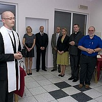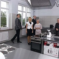 Pani dyrektor Małgorzata Wojtysiak powitała przybyłych gości, między innymi Starostę Goleniowskiego – pana Tomasza Stanisławskiego, który po uroczystym apelu otworzył nową klasopracownię do nauki zawodu dla technika żywienia i usług gastronomicznych.