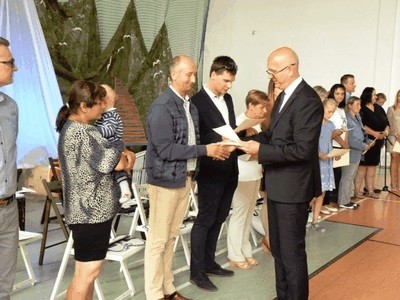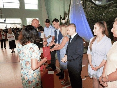 Przez dziesięć miesięcy nasz statek pływał po wielkich wodach...bywało burzowo- jak to na morzu. Ale 22 czerwca bezpiecznie dotarliśmy do brzegu. Podczas uroczystej akademii nagrodę specjalną Starosty Goleniowskiego otrzymała z rąk Pani Renaty Chomińskiej dyrektora Wydziału Oświaty, Kultury i Sportu uczennica Sylwia Janowska. Uczniowie Julia Kosiaty i Adrian Staciwa za zdobycie tytułów Mistrza Polski odebrali nagrody z rąk Pani Faustyny Kuradczyk przewodniczącej Rady Rodziców. Następnie nagrodzeni zostali uczniowie, którzy osiągnęli najlepsze wyniki w nauce, najlepsze wyniki w sporcie, najlepiej napisali egzamin gimnazjalny. Były również nagrody za szczególne zaangażowanie w życie klasy i szkoły, ale też za ogromne – u niektórych uczniów, postępy w rozwoju. Nie zabrakło wyróżnień dla uczniów, którzy odnoszą sukcesy w dziedzinach artystycznych - należących do szkolnego teatru „ Jestem inny, niż mnie znacie” oraz tych, którzy wyróżniają się ogromnym talentem plastycznym Były podziękowania dyrektora szkoły Wojciecha Maciejewskiego dla rodziców, nauczycieli i pozostałych pracowników szkoły oraz specjalne podziękowania dla absolwentów. O oprawę artystyczną uroczystości zadbała ekipa szkolnego teatru oraz zespół muzyczny „Rozśpiewani Niepokonani”, a o słodki poczęstunek tradycyjnie Piekarnia „Asprod” z Klinisk Wielkich.