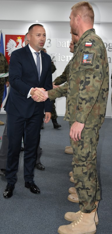 W dniu 5 lipca 2018r. Starosta Goleniowski Tomasz Kulinicz uczestniczył w uroczystości powitania żołnierzy powracających po półrocznej misji w Republice Łotewskiej, którzy pod dowództwem kpt. Bartłomieja Piotrowskiego realizowali zadania w ramach Narodowego Elementu Wsparcia II zmiany PKW Łotwa. Uroczystość odbyła się w jednostce 3 Batalionu Logistycznego Ziemi Goleniowskiej w Glewicach, gdzie na początku dowódca 1 Pomorskiej Brygady Logistycznej płk Mariusz Skulimowski i dowódca 3 batalionu logistycznego ppłk Radosław Sułek przywitali wszystkich żołnierzy i zaproszonych gości. Na uroczystości nie zabrakło podziękowań, wyróżnień oraz okolicznościowych przemówień. Z tej okazji głos zabrał Starosta Tomasz Kulinicz, który podziękował żołnierzom za ofiarną służbę, sumienne wypełnianie zadań oraz za okazany profesjonalizm i zaangażowanie. Uroczystość zakończyła się wspólnym poczęstunkiem przygotowanym przez jednostkę.