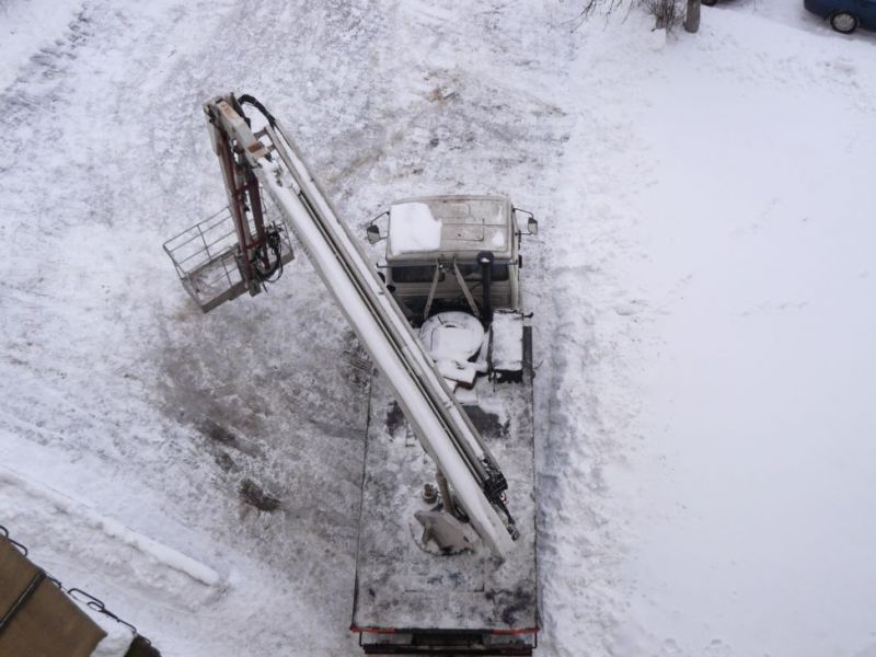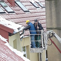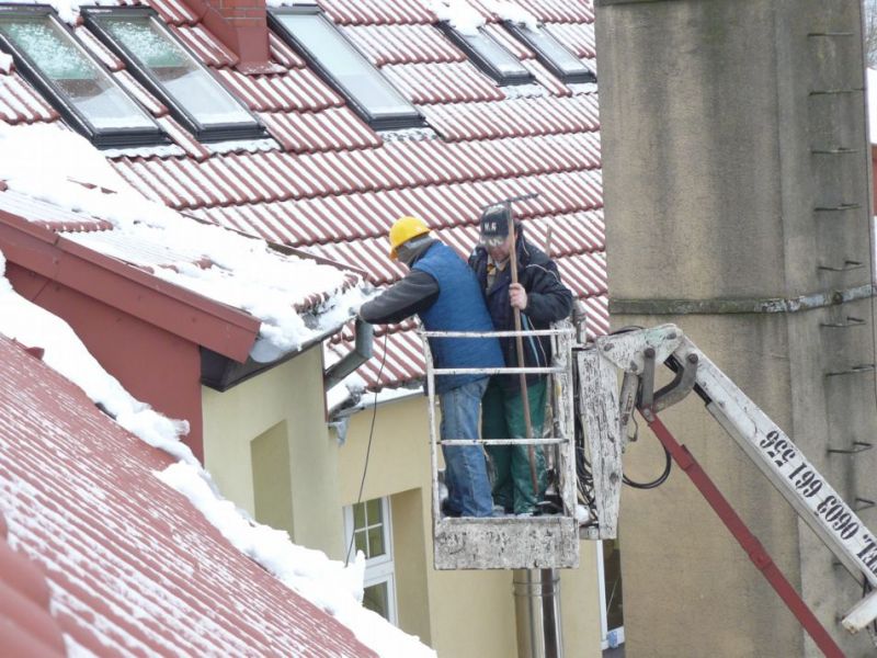 » Usuwanie zatorów śnieżnych z dachu starostwa.