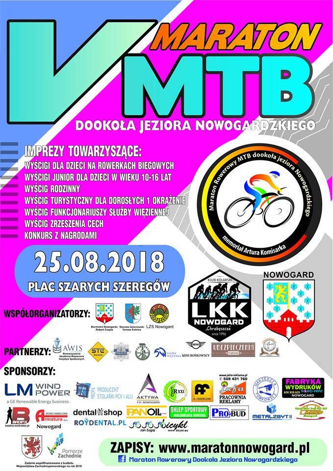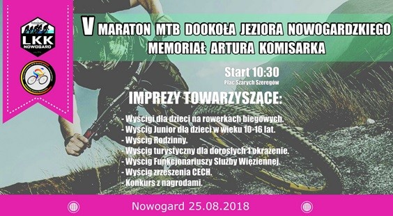 Starosta Goleniowski Tomasz Kulinicz serdecznie zaprasza na V Rowerowy Maraton MTB wokół Jeziora Nowogardzkiego Memoriał Artura Komisarka, który odbędzie się już w sobotę, dnia 25.08.2018r. w Nowogardzie.