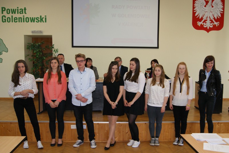 Sesję rozpoczęto od wręczenia przez starostów Tomasza Kulinicza i Tomasza Stanisławskiego pucharów i medali uczestnikom XIV Wojewódzkich Igrzysk Sportowo-Rekreacyjnych Ludowych Zespołów Sportowych Samorządów Powiatowych, które odbyły się 11 kwietnia 2015 roku w Stargardzie Szczecińskim. Powiat Goleniowski w konkurencji siatkówki kobiet i sztafety pływackiej reprezentowali uczniowie Zespołu Szkół nr 1 w Goleniowie, którzy zdobyli odpowiednio trzecie i drugie miejsce. Opiekunem zawodników jest Weronika Marcelewicz. W kategorii wieloboju VIP nasz powiat reprezentował Członek Zarządu Powiatu Andrzej Siwy.