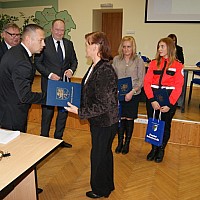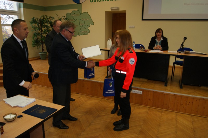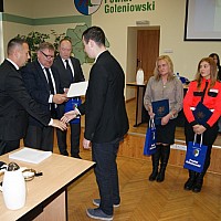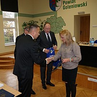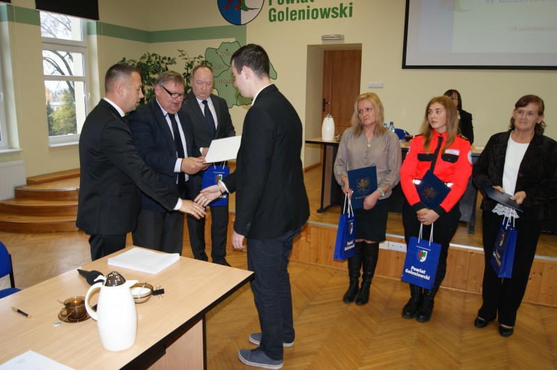 Sesję rozpoczęło uroczyste wręczenie Stypendium Rady Powiatu w Goleniowie za wyniki w nauce dla 4 uczniów szkół ponadgimnazjalnych prowadzonych przez Powiat Goleniowski. Zgodnie z Powiatowym Programem wspierania edukacji uzdolnionych dzieci i młodzieży oraz wyrównywania szans edukacyjnych dzieci i młodzieży Stypendium przyznawane jest na okres roku szkolnego, a wypłacane przez 10 miesięcy od września do czerwca w wysokości 200 zł miesięcznie.