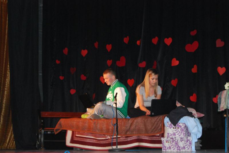 Na widowni Nowogardzkiego Domu Kultury zasiedli nauczyciele wraz z całą społecznością uczniowską I LO. Rzecz traktowała o miłości, współczesnym Romeo i Juli. Kochankowie znali się tylko z Internetu. Przedstawienie zakończyło i się śmiercią obojga bohaterów. W sztuce wykorzystano utwory poetyckie K.J. Gałczyńskiego, A Osieckiej oraz piosenki o tematyce miłosne m.in. „Dumka na dwa serca”, czy „Piosenka księżycowa”.