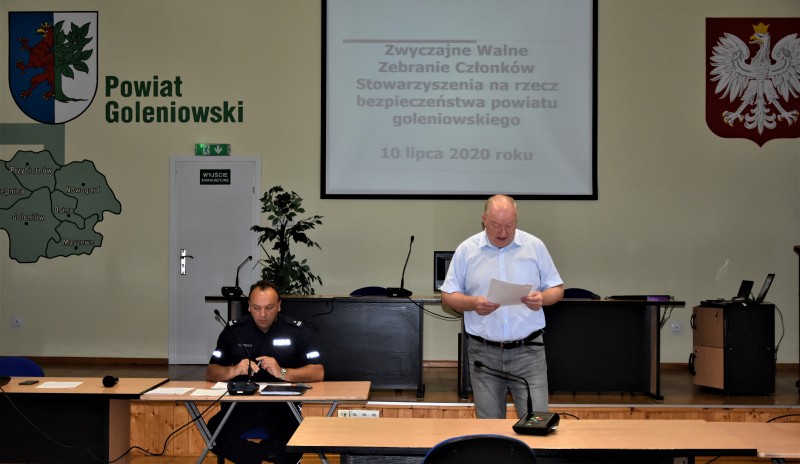 W dniu 10 lipca br. w siedzibie Starostwa Powiatowego w Goleniowie odbyło się Walne Zebranie Członków „Stowarzyszenia na rzecz bezpieczeństwa powiatu goleniowskiego”. Funkcję prezesa stowarzyszenia pełni Starosta Goleniowski Tomasz Stanisławski. Podczas zebrania przyjęto sprawozdanie z działalności Stowarzyszenia za 2019 rok i uchwalono plany działalności Stowarzyszenia na rok 2020. Omówiono też prace nad określeniem istotnych potrzeb w zakresie poprawy stanu bezpieczeństwa, na które może mieć wpływ działalność Stowarzyszenia. Podczas spotkania omówione zostały także kwestie związane z SARS-CoV-19. Na zakończenie spotkania Starosta Stanisławski podziękował wszystkim za wsparcie organizacyjne i finansowe Stowarzyszenia.