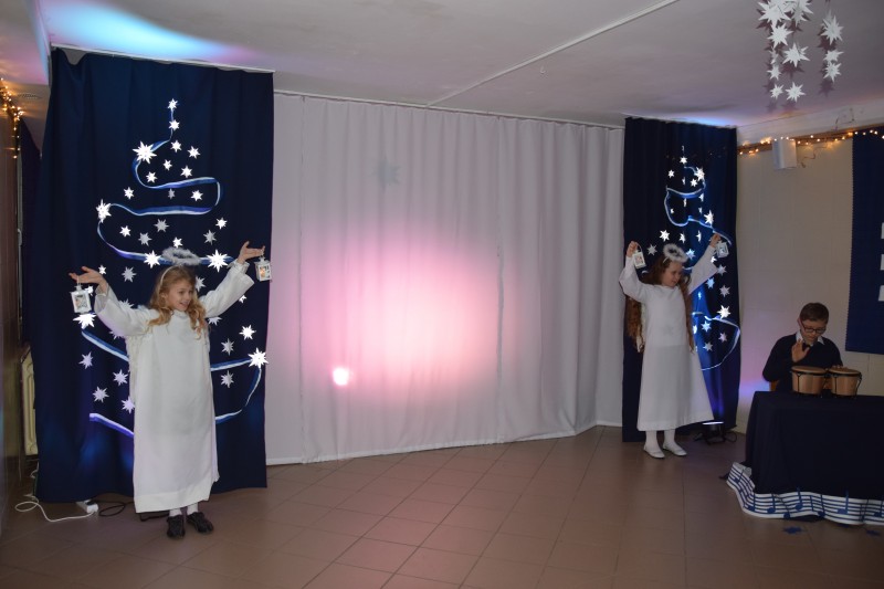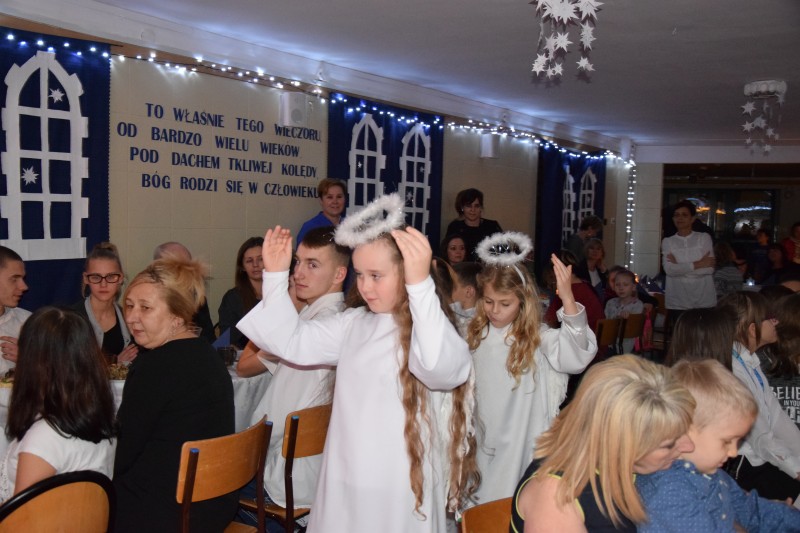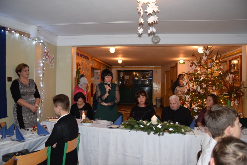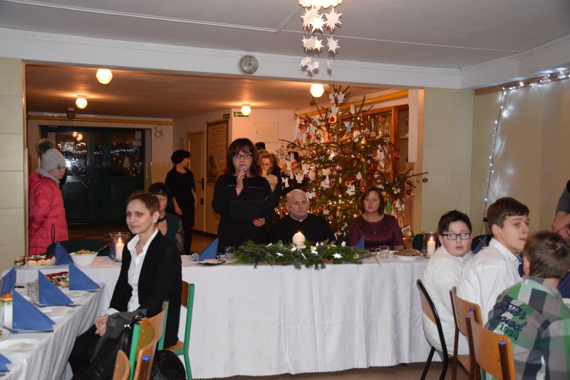 Świętowanie rozpoczęło się od uroczystej mszy roratniej, odprawionej przez Księdza Kanonika, w której uczestniczyli wychowankowie ośrodka wraz z opiekunami. Po powrocie do ośrodka Pani Dyrektor powitała wszystkich zgromadzonych słowami: „W adwentowej refleksji, w skupieniu przy wigilijnym stole, w ciszy wyczekiwania na wigilijną gwiazdę, do gorącego i otwartego serca niech przyjdzie nowonarodzona Dziecina i umocni nas swoją radością, byśmy ją mogli rozdawać tam gdzie jej brakuje”. Następnie głos zabrała Pani Jowita Pawlak Specjalista do spraw pozyskiwania funduszy zewnętrznych w Starostwie Powiatowym w Goleniowie, która w ciepłych słowach przekazała życzenia świąteczne dla całej społeczności. Wszyscy goście z zaciekawieniem mieli okazję obejrzeć przepiękne Jasełka, przygotowane w tym roku w zupełnie nowej konwencji „Teatru Cieni”. Zgodnie z wielowiekową tradycją nie obyło się bez opłatka oraz skosztowania przepysznych dań wigilijnych. Jak nakazuje stary obyczaj, po wieczerzy rozpoczęło się kolędowanie, które wprowadziło nas w świąteczny nastrój. Wieczór Wigilijny był niezwykłym przeżyciem dla nas wszystkich.