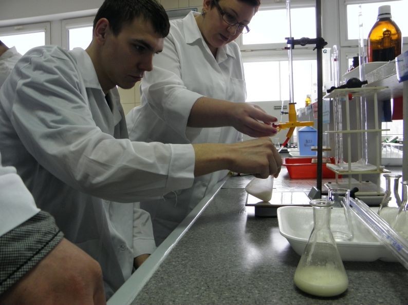 Wykorzystując specjalistyczny sprzęt uczniowie określili kwasowość mleka. Największym zainteresowaniem cieszyła się produkcja lodów. Uczniowie degustowali wszystkie przetwory mleczarskie i dziwili się, dlaczego mają one inny smak niż produkty ze sklepu. Na nurtujące młodych ludzi pytania odpowiadały panie prowadzące warsztaty: dr hab. inż. Izabela Dmytrow oraz dr inż. Anna Mituniewicz-Małek.