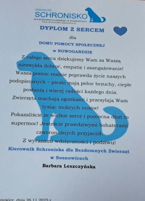 Wizyta Domu Pomocy Społecznej w Nowogardzie w schronisku dla zwierząt - 02.12.2025 r.