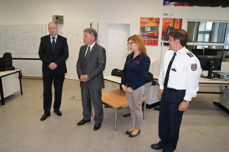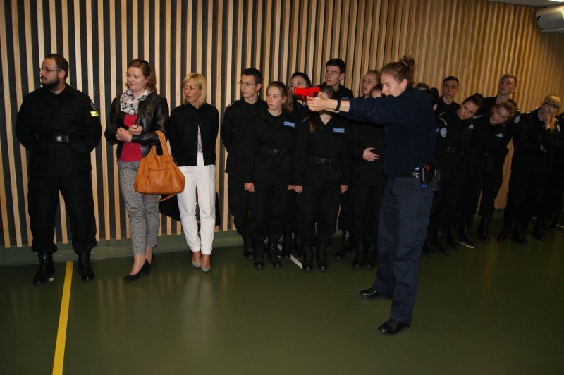 Spotkanie miało bardzo intensywny przebieg. Na początku zostaliśmy zaproszeni do pomieszczenia strzelniczego, gdzie studenci uczelni ćwiczą na co dzień umiejętność strzelania na trzech etapach: pierwszy etap to tzw. Etap szkolny, gdzie studenci uczą się strzelania pod presją czasu do bardzo małych obiektów, drugi etap to nabywanie umiejętności strzelania z różnych pozycji zza osłony. Trzeci etap to tzw. Blue Box, czyli symulacje strzelania w różnych sytuacjach, w których wszystkie działania odbywają się na żywo, pod czujnym okiem indywidualnych trenerów.