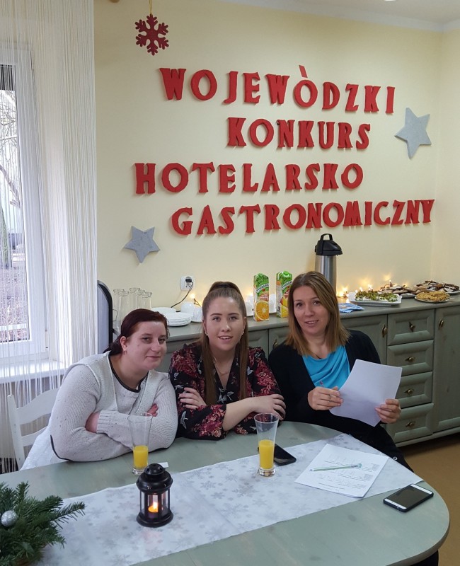 Dnia 13 grudnia uczennice Branżowej Szkoły I stopnia nr 1 w Goleniowie: Justyna Młudzik z klasy II i Katarzyna Wiśniewska z klasy III reprezentowały Zespół Szkół w Goleniowie podczas Wojewódzkiego Konkursu Hotelarsko-Gastronomicznego. Celem konkursu było rozwijanie zainteresowań uczniów, upowszechnianie kształcenia zawodowego i integracja placówek kształcenia specjalnego ze Szczecina, Pyrzyc, Polic i Goleniowa. Konkurs składał się z czterech zadań: testu wiedzy zawodowej, rozpoznawania sprzętu gospodarstwa domowego, przygotowaniu deseru i świątecznym nakryciu stołu. Uczennice z Goleniowa zajęły IV miejsce, a wszystkie drużyny wykazały się dużą wiedzą i pomysłowością. Organizatorom serdecznie dziękujemy za zaproszenie.
