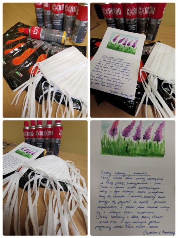15 kwietnia 2020r. był dniem życzliwości dla personelu i mieszkańców Domu Pomocy Społecznej. Wielka Orkiestra Świątecznej Pomocy odpowiedziała na naszą prośbę o zabezpieczenie w środki ochrony osobistej tj. maseczki, płyny do dezynfekcji rąk, żele do mycia rąk. Otrzymaliśmy to wsparcie od Fundacji Jurka Owsiaka. Za co jesteśmy wdzięczni. Ponadto w tym dniu, pracownicy Specjalistycznej poradni terapeutycznej dla dzieci, młodzieży i ich rodzin z Nowogardu, wsparły nas w preparaty do rąk i powierzchni, maseczki oraz rękawiczki i kartkę ze słowami wsparcia i otuchy. Takie działania budują nas pracowników do kontynuacji walki z wirusem, dają nadzieję i motywują do działania. Jak mówi Jurek Owsiak WYGRAMY !