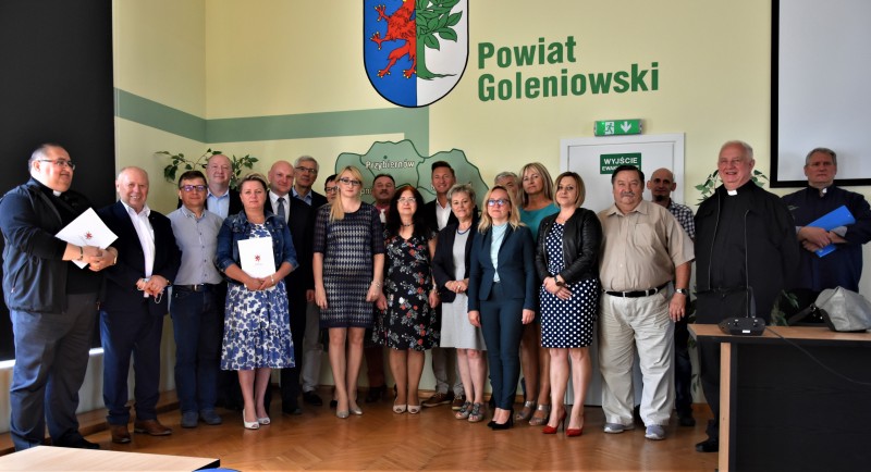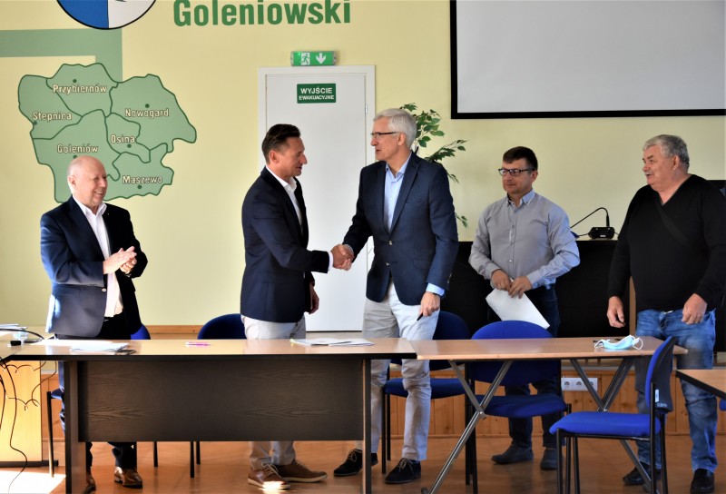 W dniu 23 lipca 2020 r. w Starostwie Powiatowym w Goleniowie odbyło się podpisanie umów w ramach konkursu „Granty sołeckie 2020”. W podpisaniu umów uczestniczyli: Marszałek Województwa Zachodniopomorskiego Olgierd Geblewicz, Radny Województwa Zachodniopomorskiego Adam Fedeńczak, Starosta Goleniowski Tomasz Stanisławski oraz Burmistrzowie, Wójtowie i sołtysi z terenu powiatu goleniowskiego, które otrzymały dofinansowania. Wsparcie w ramach Programu otrzymało 5 gmin, 8 sołectw i 3 parafie z terenu powiatu goleniowskiego. Otrzymane środki to pula ponad 200 tys. zł, które zostaną przeznaczone na realizację grantów m.in. nowy kompleks rekreacyjny, miejsce postojowo-rekreacyjne dla rowerzystów korzystających ze szlaku rowerowego "Równina Nowogardzka", nowy drewniany amfiteatr pod sosnami, oraz na poprawę bazy sportowej i remonty zabytkowych obiektów. Sołectwa powiatu goleniowskiego, które otrzymały granty to: