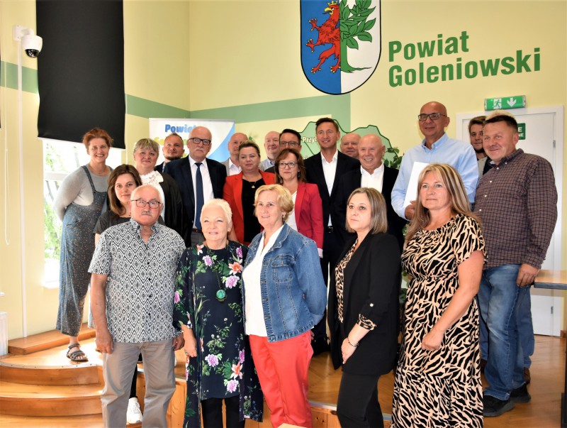W dniu 24 lipca 2023 r. w Starostwie Powiatowym w Goleniowie odbyło się podpisanie umów w ramach konkursu „Granty sołeckie 2023”. W podpisaniu umów uczestniczyli: Marszałek Województwa Zachodniopomorskiego Olgierd Geblewicz, Radny Województwa Zachodniopomorskiego Adam Fedeńczak, Starosta Goleniowski Tomasz Stanisławski oraz Burmistrzowie, Wójtowie i sołtysi z terenu powiatu goleniowskiego, które otrzymały dofinansowania.