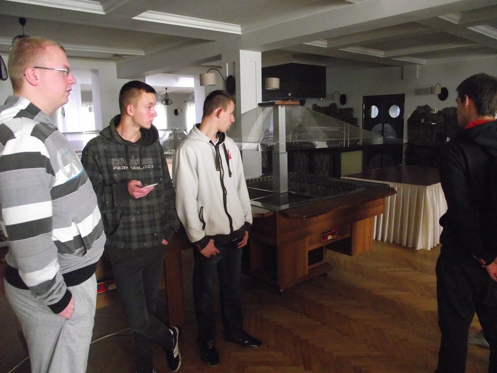 Kolejnym punktem wycieczki była wizyta w Kompleksie Wczasowym Sandra Spa w Pogorzelicy. Po obiekcie oprowadzała nas sympatyczna pani Aleksandra, która pokazała nam całe zaplecze gastronomiczne oraz rozrywkowe obiektu. Młodzież mogła zapoznać się z profesjonalnymi urządzeniami gastronomicznymi, na jakich w przyszłości być może będzie pracować.