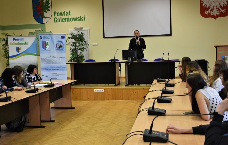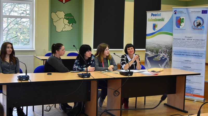 W dniu 03.11.2017 roku uczniowie Zespołu Szkół Ponadgimnazjalnych, trzecia grupa uczestników stażu w Berlinie w ramach projektu finansowanego z programu PO WER była z wizytą u Starosty Goleniowskiego Tomasza Kulinicza. Podczas tego spotkania Starosta życzył uczniom bezpiecznego pobytu, wielu wrażeń oraz czerpania z tego co dobre w niemieckim systemie pracy. Jednocześnie uczniowie otrzymali należne kieszonkowe zgodnie z podpisanymi umowami. Jest to przedostatnia grupa stażystów, natomiast kolejna i ostatnia grupa wyjedzie na koniec stycznia.