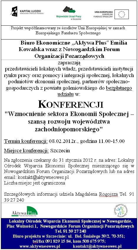 » "Wzmocnienie sektora Ekonomii Społecznej – szansą rozwoju województwa zachodniopomorskiego"