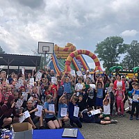 Uczniowie, którzy stanęli na podium zostali nagrodzeni pucharami i pamiątkowymi dyplomami. Wszyscy goście i zawodnicy po biegu zaproszeni byli na zdrowy poczęstunek. Ponadto wszystkie dzieci mogły korzystać z licznych atrakcji: zamki dmuchane, konkurs pierwszej pomocy, pokaz doświadczeń chemicznych, puszczanie baniek mydlanych i wiele innych. Za rok planujemy również zagościć w Białuniu.