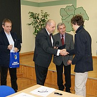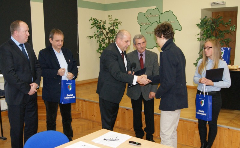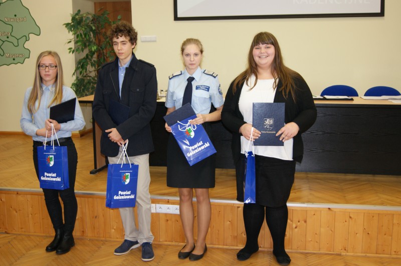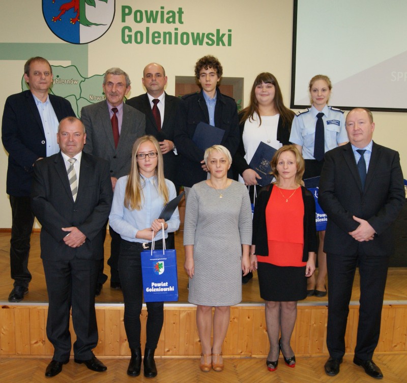 Na początku spotkania Przewodniczący Rady Witold Kaleczyc oraz starostowie Tomasz Stanisławski i Tomasz Kulinicz wręczyli Stypendium Rady Powiatu w Goleniowie za wyniki w nauce dla 4 uczniów szkół ponadgimnazjalnych prowadzonych przez Powiat Goleniowski. Zgodnie z Powiatowym Programem wspierania edukacji uzdolnionych dzieci i młodzieży oraz wyrównywania szans edukacyjnych dzieci i młodzieży Stypendium przyznawane jest na okres roku szkolnego, a wypłacane przez 10 miesięcy od września do czerwca w wysokości 200 zł miesięcznie.