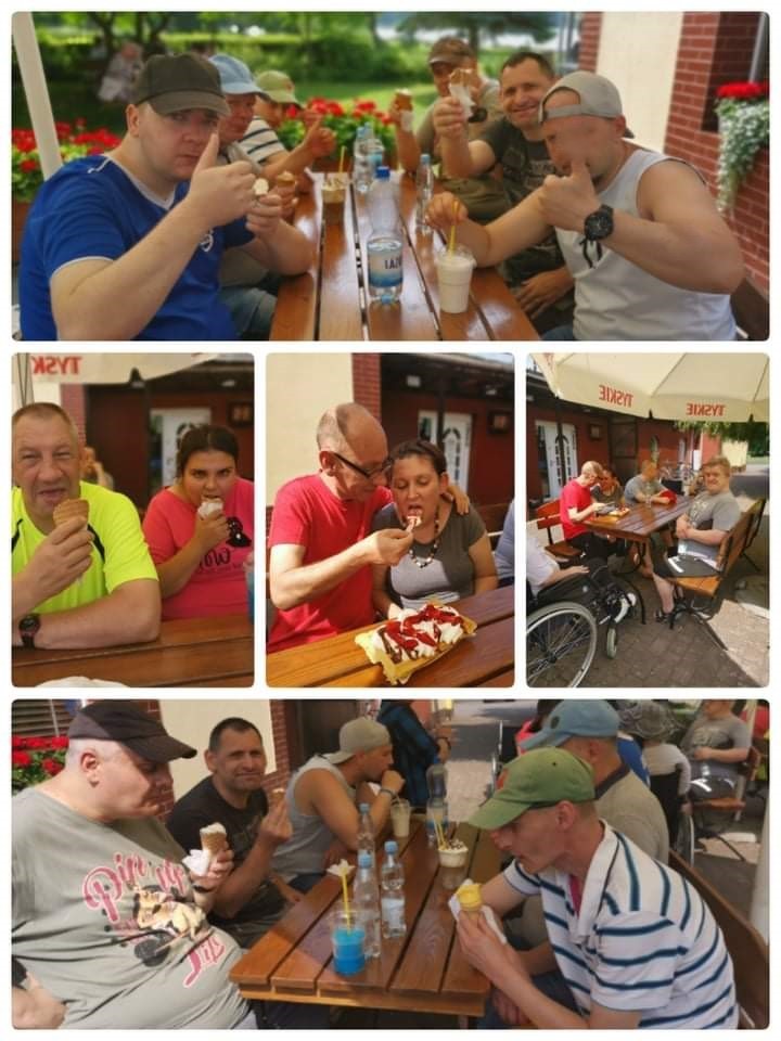 Sezon letni to pora, kiedy można w pełni korzystać z uroków pogody, a tym samym wybrać się na deser. W dniach 14 i 21 lipca 2021r. mieszkańcy i mieszkanki DPS mieli okazję skosztować smacznych lodów i gofrów oraz kawy mrożonej w nowo otwartej lodziarni „Ale lody”. Dodatkowo podopieczni mogli miło spędzić czas, podziwiając piękne widoki Nowogardzkiego jeziora.