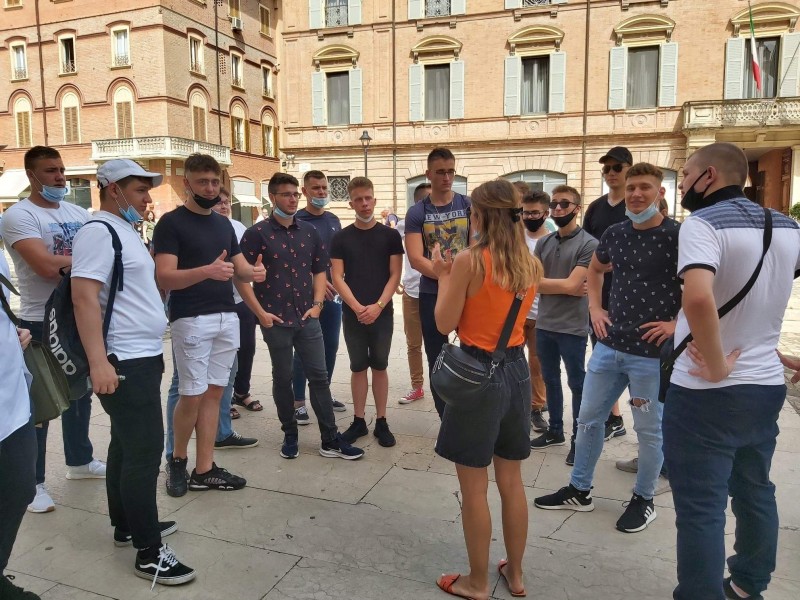21 czerwca 2021 r. odbyło się spotkanie powitalne w siedzibie firmy goszczącej – SISTEMA TURISMO. Firma zajmuje się m.in. międzynarodową mobilnością - zapewniając najlepsze doświadczenia zawodowe, szkolenia, warsztaty i seminaria dla uczniów oraz dorosłych. Spotkanie poprowadziła Pani Katarzyna Gawronek – specjalista w dziale współpracy międzynarodowej. Podczas spotkania uczestnicy projektu zapoznali się między innymi z niezbędnymi dokumentami potrzebnymi podczas trwania staży, zasadami mobilności topografią miasta oraz sposobami komunikacji. Stażyści poznali opiekunów z ramienia firmy goszczącej, jak również odbyły się prezentacje u pracodawców. Po spotkaniu w biurze został zorganizowany spacer po Rimini, podczas, którego uczestnicy projektu mogli podziwiać najważniejsze zabytki miasta w jego historycznej części, m. in. Arco d’Augusto – czyli łuk triumfalny, Piazza Tre Martiri (Plac Trzech Męczenników) najbardziej reprezentacyjnej ulicy Rimini, który jest formalnym centrum miasta, Museo della citta – Muzeum miejskie. Wyjazd został zorganizowany w ramach projektu Unii Europejskiej ERASMUS+ projektu „Wysokie kwalifikacje zawodowe - szansą na europejskim rynku pracy”.