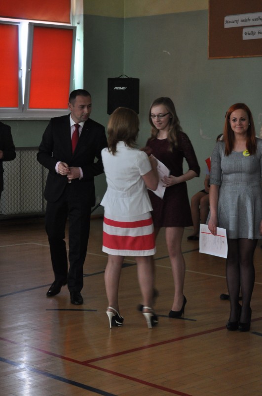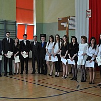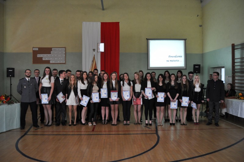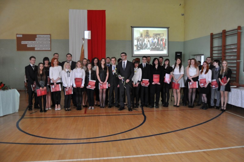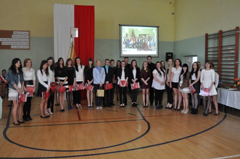 Po wręczeniu wszystkich podziękowań nastąpiło wręczenie świadectw ukończenia szkoły. W trakcie całego apelu można było oglądać prezentację multimedialną, na której umieszczone zostały zdjęcia z wspólnych trzech lat absolwentów w szkole oraz informację o wszystkich wyróżnionych.