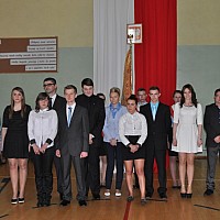 Podczas tej szczególnie uroczystej atmosfery najlepsi uczniowie, którzy osiągnęli najwyższe średnie ocen oraz uzyskali najwyższe lokaty w olimpiadach, konkursach, zawodach sportowych złożyli swój wpis do pamiątkowej „Złotej Księgi”. Uczniowie wyróżnieni otrzymali świadectwo z „czerwonym paskiem” oraz odznakę SAPERE AUDE z rąk p. dyr. Kariny Surmy oraz Pana Tomasza Kulinicza.
