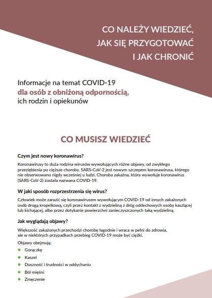 Zalecenia dla osób z chorobami przewlekłymiZalecenia dla osób z obniżoną odpornością