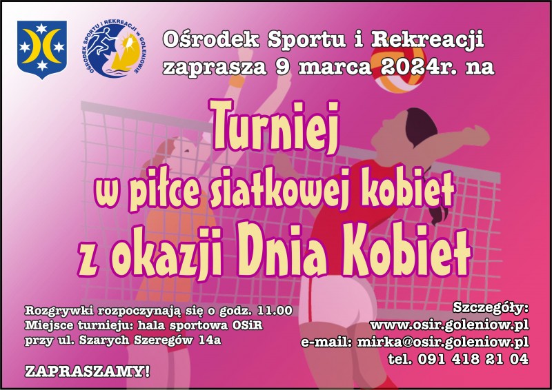 Ośrodek Sportu i Rekreacji w Goleniowie zaprasza ma Turniej w Piłce Siatkowej Kobiet w dniu 9 marca 2024 r. na hali sportowa OSIR w Goleniowie, ul. Szarych Szeregów 14