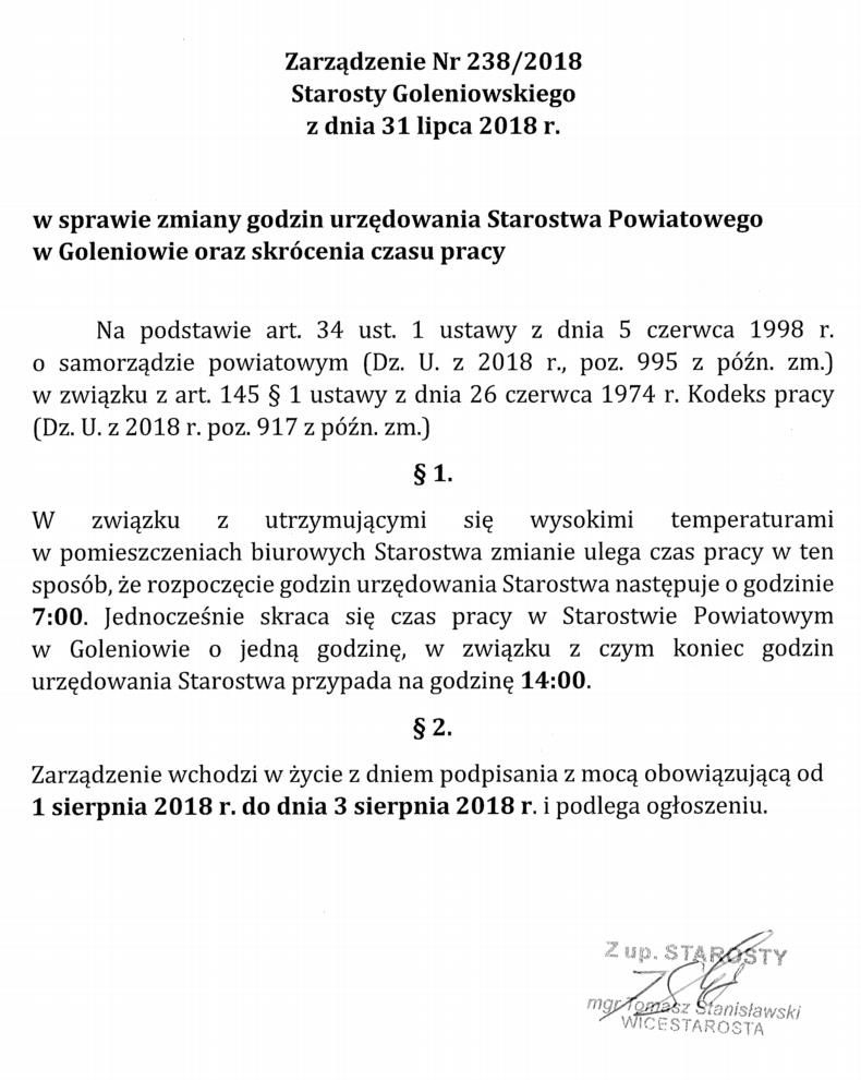 » Zmiana godzin urzędowania Starostwa Powiatowego w Goleniowie oraz skrócenie czasu pracy