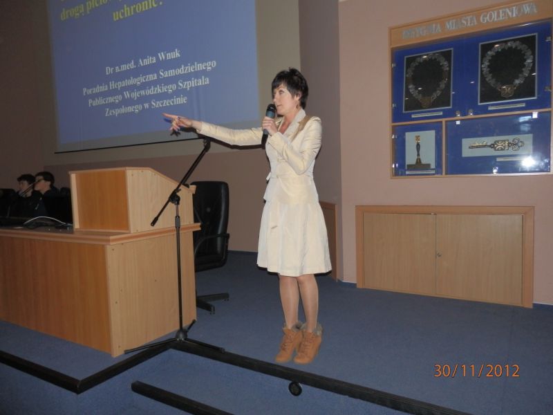 W dniu 30 listopada 2012 roku w sali konferencyjnej Urzędu Gminy i Miasta w Goleniowie odbyła się konferencja szkoleniowa zorganizowana przez Państwowego Powiatowego Inspektora Sanitarnego w Goleniowie dr n. med. Bożenę Ewę Marcinkowską pt.: „Zwalczenie AIDS i zapobieganie zakażeniom HIV”.