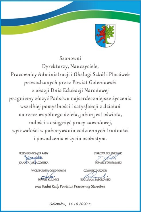 Informacja o stanie realizacji zadań oświatowych Powiatu Goleniowskiego w roku szkolnym 2019/2020