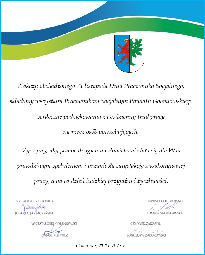 Życzenia z okazji Dnia Pracownika Socjalnego