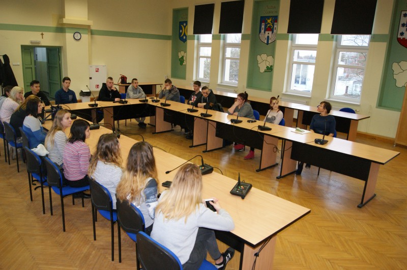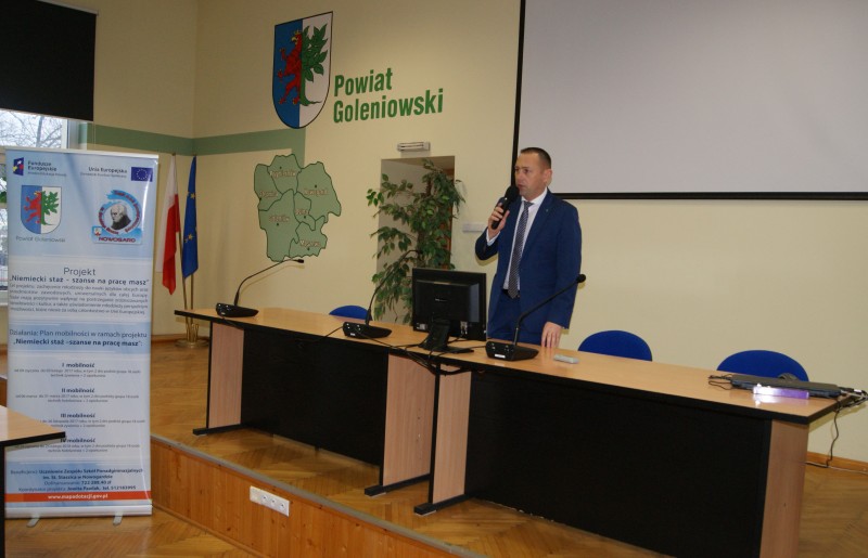 Starosta Goleniowski Tomasz Kulinicz gościł dzisiaj, tj. w środę 4 stycznia 2017 roku pierwsza grupę uczestników projektu „Niemiecki staż - szanse na pracę masz” w ramach programu Erasmus +. Projekt przeznaczony jest dla 72 uczniów Zespołu Szkół Ponadgimnazjalnych w Nowogardzie. W spotkaniu uczestniczyli również dyrektor szkoły Jarosław Chudyk oraz koordynator projektu Jowita Pawlak.